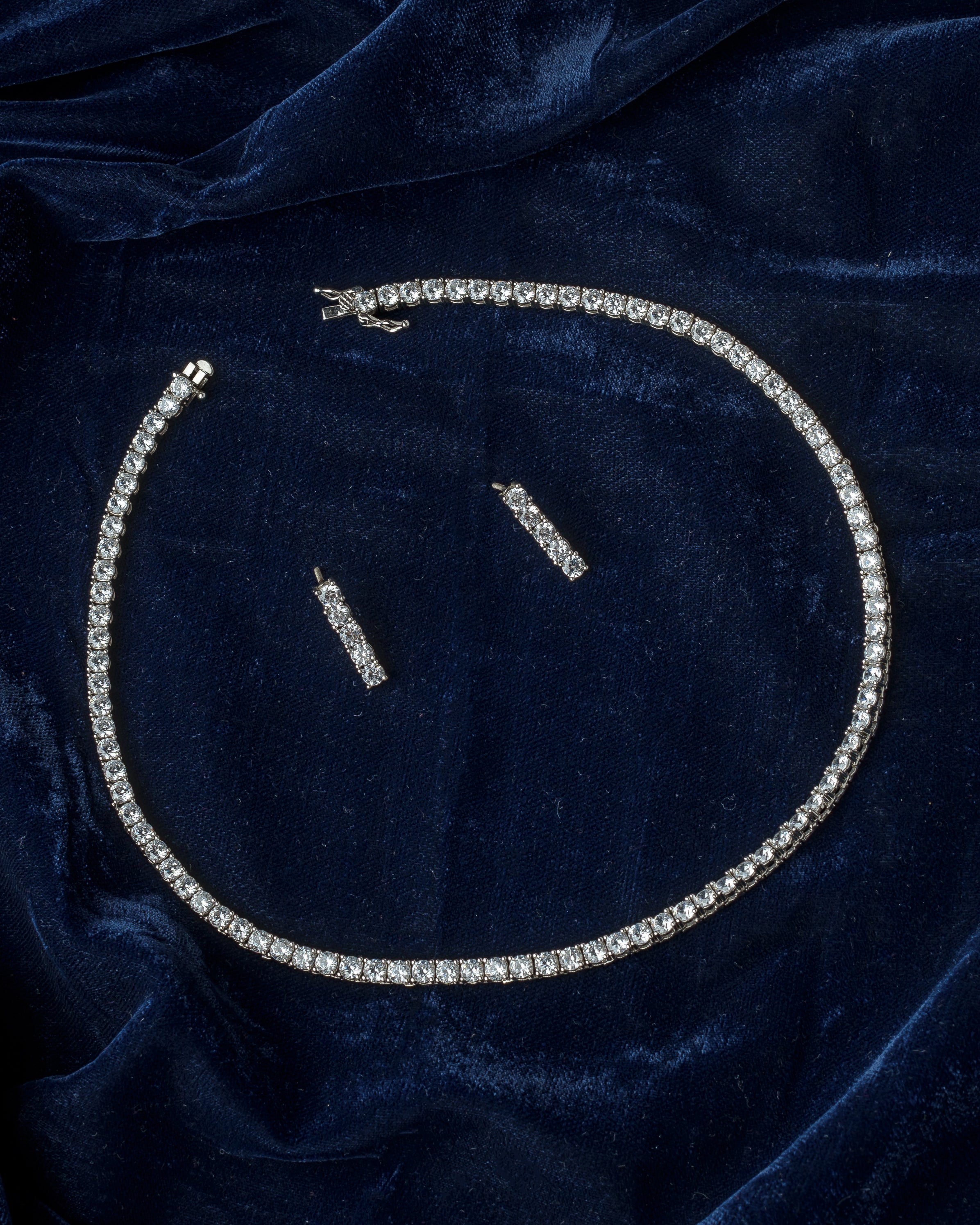 - Crystal Choker Necklace: Features a single row of high-shine, uniformly set white crystals for a clean, minimalist look.
