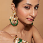 Aatman Gold Plated Green Womens Kundan, Polki Pair of Earrings