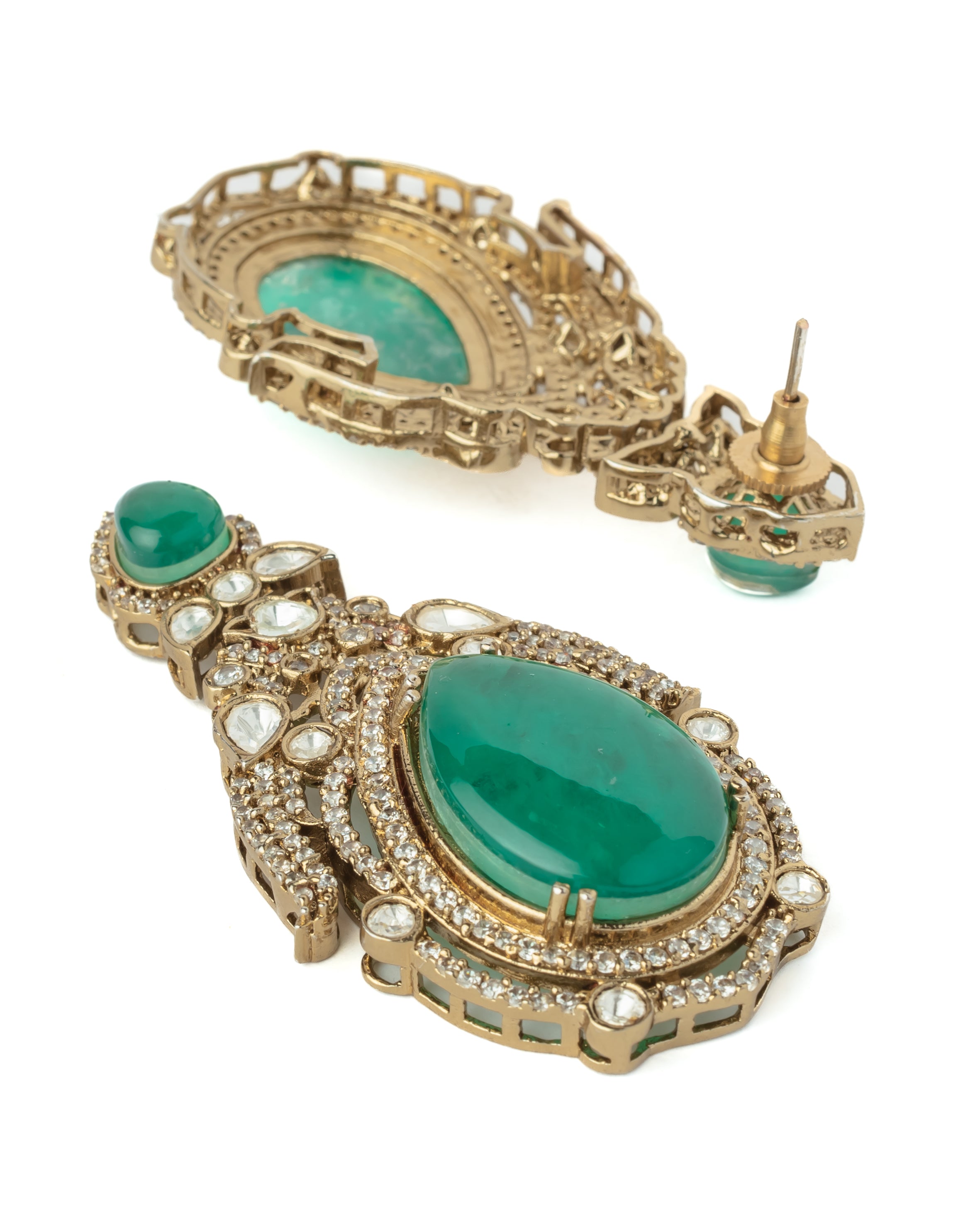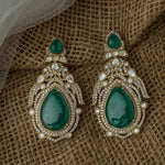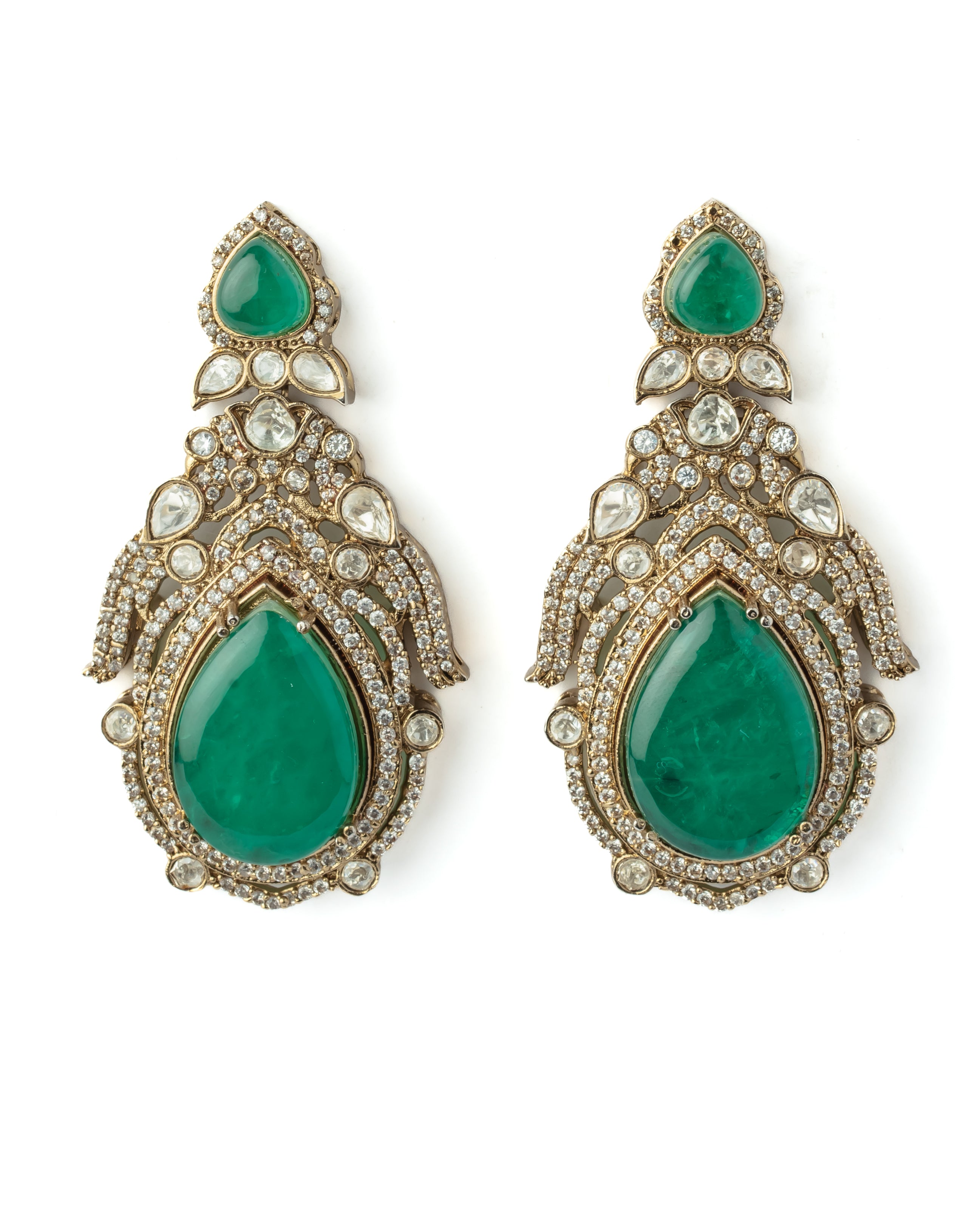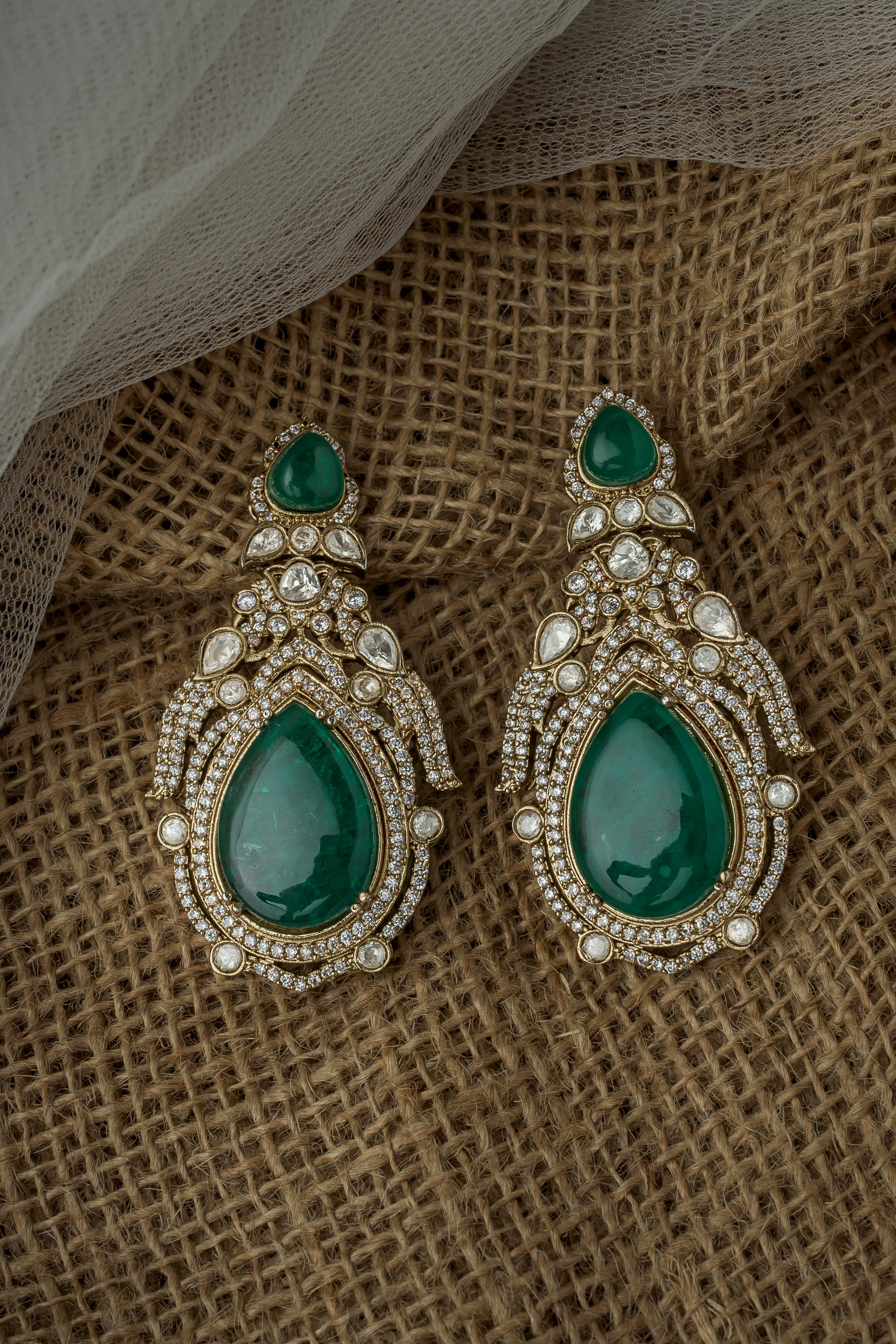 Elegant teardrop earrings adorned with dazzling diamonds and striking green gemstones, exuding timeless luxury and charm. A perfect blend of sophistication and artistry for any occasion.