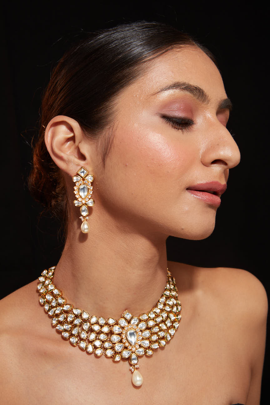 - Exquisite Design – Gold-plated Kundan necklace set with intricate detailing.