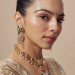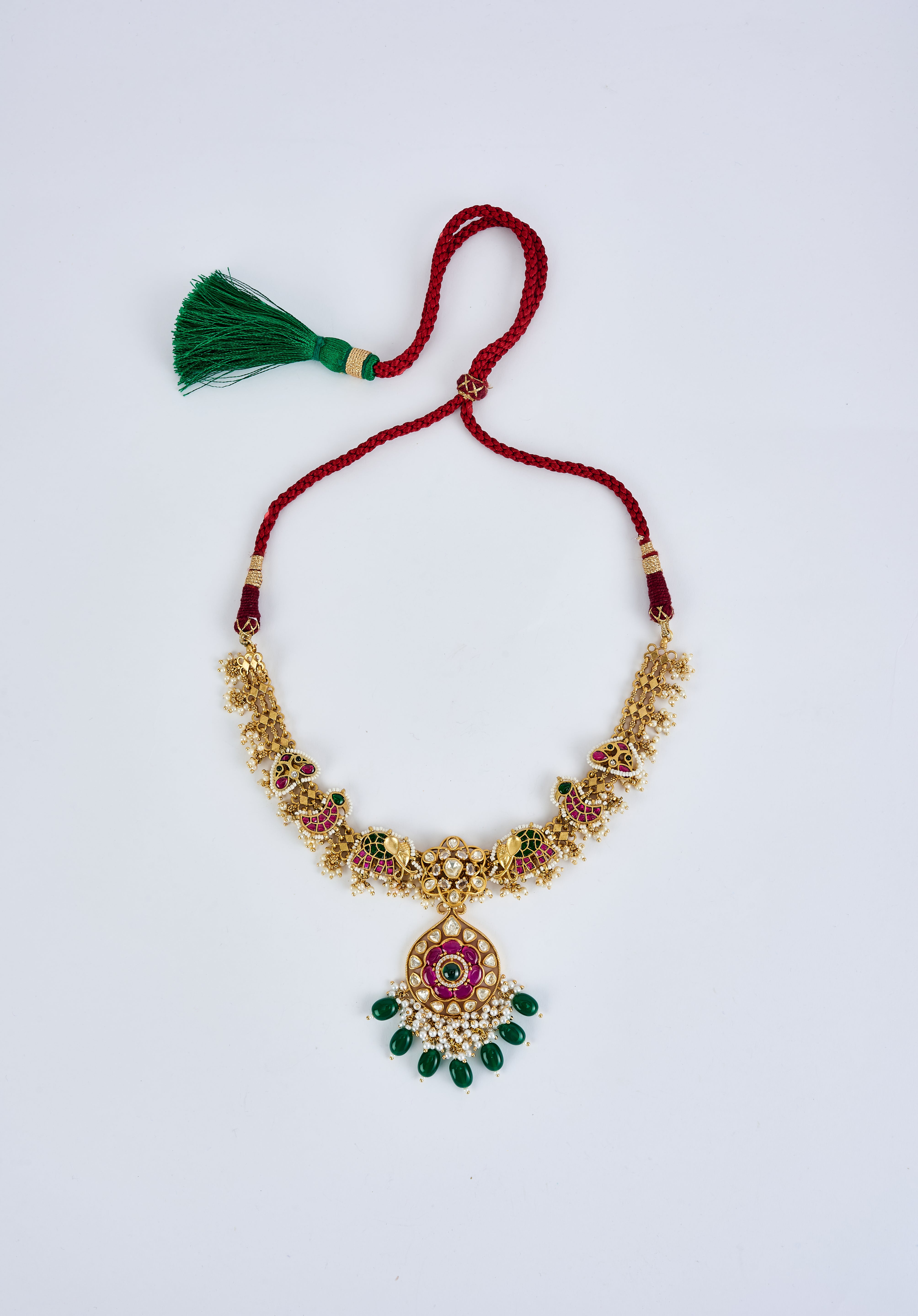 Morpankh Gold Plated Multicolored Womens Kundan, Polki Short Necklace Set with Pair of Earrings (Freesize)