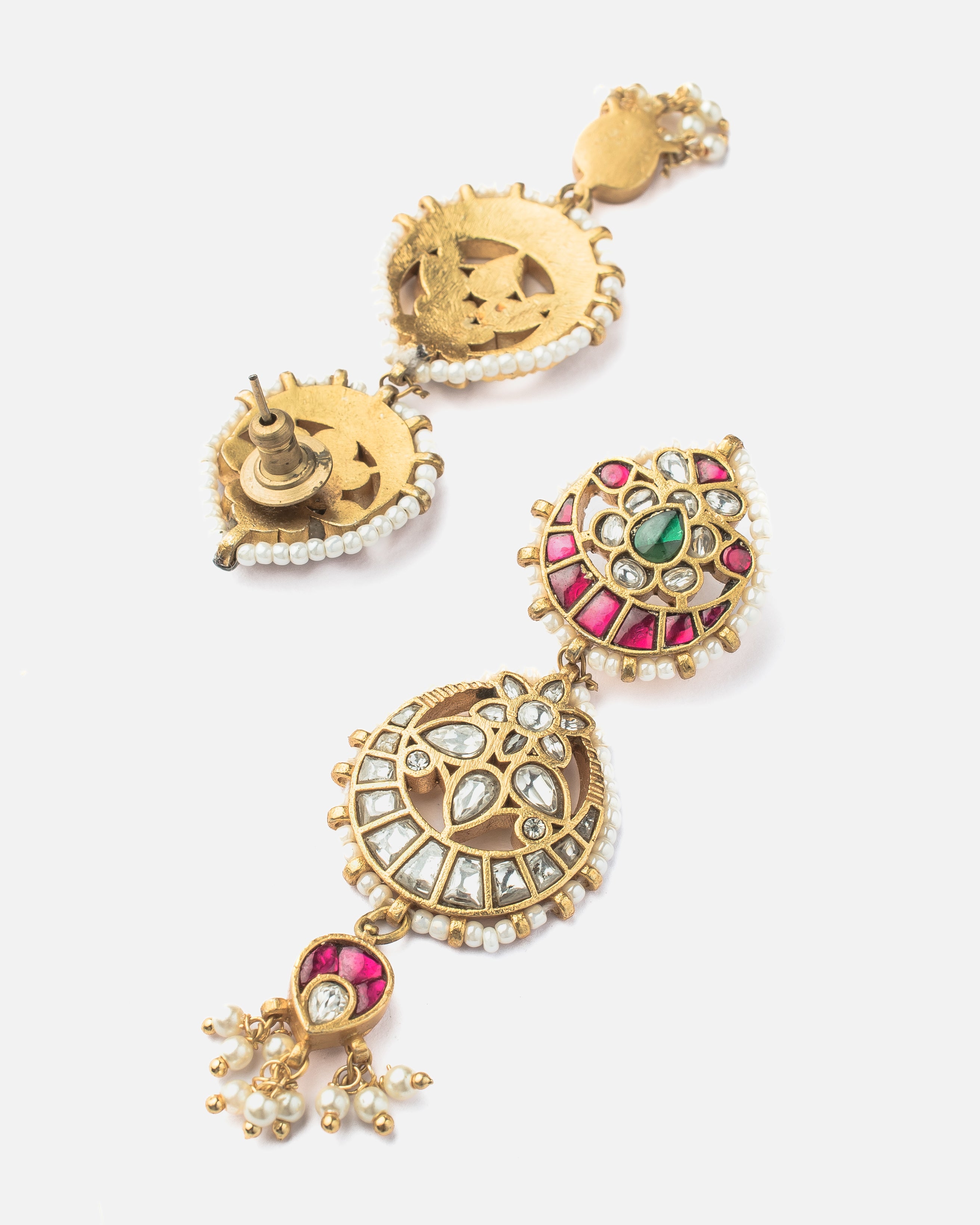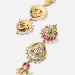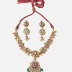 - Intricate Design: Handcrafted necklace set with detailed gold work and vibrant gemstone embellishments.